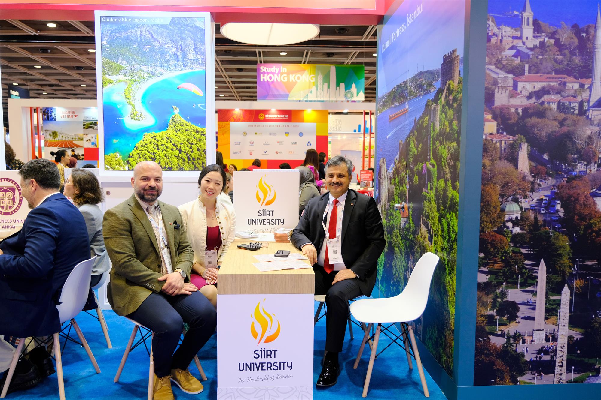 Hong Kong Kongre ve Sergi Merkezi’nde düzenlenen ve 65 ülkeden 500’ün üzerinde kurum ile 2500’den fazla katılımcıyı bir araya getiren fuarda Üniversitemiz, Türkiye Ulusal Ajansı koordinasyonunda oluşturulan “Study in Türkiye” pavilyonu bünyesinde temsil edildi.